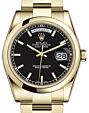 - Rolex Day-Date 36 Yellow Gold Black Index Dial & Smooth Domed Bezel President Bracelet 118208 Rolex Day-Date 36 Yellow Gold Black ... Domed Bezel President Bracelet 118208Retail Price: Regular Price $31,250 Save: $5,751 (18%) Our Price: Special Price $25,499