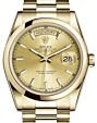 - Rolex Day-Date 36 Yellow Gold Champagne Index Dial & Smooth Domed Bezel President Bracelet 118208 Rolex Day-Date 36 Yellow Gold Champagne ... Domed Bezel President Bracelet 118208Retail Price: Regular Price $31,250 Save: $5,751 (18%) Our Price: Special Price $25,499