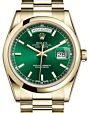 - Rolex Day-Date 36 Yellow Gold Green Index Dial & Smooth Domed Bezel President Bracelet 118208 Rolex Day-Date 36 Yellow Gold Green ... Domed Bezel President Bracelet 118208Retail Price: Regular Price $31,250 Save: $251 (1%) Our Price: Special Price $30,999