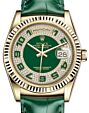 - Rolex Day-Date 36 Yellow Gold Green Diamond Paved Arabic Dial & Fluted Bezel Green Leather Strap 118138 Rolex Day-Date 36 Yellow Gold Green ... Bezel Green Leather Strap 118138Retail Price: Regular Price $36,300 Save: $3,601 (10%) Our Price: Special Price $32,699
