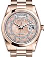- Rolex Day-Date 36 Rose Gold Pink Roman Dial & Smooth Domed Bezel President Bracelet 118205 Rolex Day-Date 36 Rose Gold Pink Roman ... Domed Bezel President Bracelet 118205Retail Price: Regular Price $33,950 Save: $2,951 (9%) Our Price: Special Price $30,999