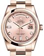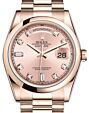 - Rolex Day-Date 36 Rose Gold Pink Diamond Dial & Smooth Domed Bezel President Bracelet 118205 Rolex Day-Date 36 Rose Gold Pink ... Domed Bezel President Bracelet 118205Retail Price: Regular Price $36,950 Save: $4,951 (13%) Our Price: Special Price $31,999