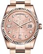 - Rolex Day-Date 36 Rose Gold Pink Diamond Dial & Fluted Bezel Oyster Bracelet 118235 Rolex Day-Date 36 Rose Gold Pink ... Fluted Bezel Oyster Bracelet 118235Retail Price: Regular Price $35,550 Save: $4,151 (12%) Our Price: Special Price $31,399