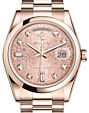 - Rolex Day-Date 36 Rose Gold Pink Jubilee Diamond Dial & Smooth Domed Bezel President Bracelet 118205 Rolex Day-Date 36 Rose Gold Pink ... Domed Bezel President Bracelet 118205Retail Price: Regular Price $36,950 Save: $4,951 (13%) Our Price: Special Price $31,999