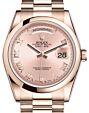 - Rolex Day-Date 36 Rose Gold Pink Roman Dial & Smooth Domed Bezel Oyster Bracelet 118205 Rolex Day-Date 36 Rose Gold Pink Roman ... Domed Bezel Oyster Bracelet 118205Retail Price: Regular Price $32,450 Save: $2,451 (8%) Our Price: Special Price $29,999