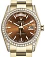 - Rolex Day-Date 36 Yellow Gold Cognac Index Dial & Diamond Bezel Oyster Bracelet 118348 Rolex Day-Date 36 Yellow Gold Cognac ... Diamond Bezel Oyster Bracelet 118348Retail Price: Regular Price $43,700 Save: $7,901 (18%) Our Price: Special Price $35,799