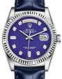 - Rolex Day-Date 36 White Gold Blue Index Dial & Fluted Bezel Blue Leather Strap 118139 Rolex Day-Date 36 White Gold Blue Index ... Fluted Bezel Blue Leather Strap 118139Retail Price: Regular Price $23,550 Save: $2,451 (10%) Our Price: Special Price $21,099