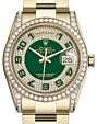 - Rolex Day-Date 36 Yellow Gold Green Diamond Paved Arabic Dial & Smooth Domed Bezel President Bracelet 118208 Rolex Day-Date 36 Yellow Gold Green ... Domed Bezel President Bracelet 118208Retail Price: Regular Price $45,400 Save: $6,201 (14%) Our Price: Special Price $39,199