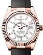 - Rolex Sky-Dweller Rose Gold White Index Dial Oysteflex Rubber Strap 326235 Rolex Sky-Dweller Rose Gold White Index Dial Oysteflex Rubber Strap 326235Retail Price: Regular Price $42,700 Save: $6,701 (16%) Our Price: Special Price $35,999