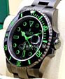 Most Expensive Submariner Models & CustomizationsIf you are looking to make a really bold statement with your new Rolex Submariner, you may wish to turn your attention towards the most expensive models in the collection, which are constructed primarily from 18k gold. In particular, the two most expensive Submariners currently available for purchase are the ref. 116618 and the ref. 116619, which are made from 18k yellow gold and 18k white gold, respectively. Both models feature date display windows, have blue ceramic bezels, come with 18k gold Oyster bracelets and have 40mm case sizes. Moreover, both models offer water resistance at depths of up to 300 metres, or 1,000 feet. The Submariner ref. 116618 and 116619 timepieces are both current production models, which are placed right at the top end of the Submariner collection. The ref. 116619, in particular, sits atop the tree, with brand new watches of this type typically retailing for in excess of $37,000. Rolex Submariners are robust watches, which retain much of their value for many years. As a result, even used Submariner 116619 models can sell for as much as $30,000. Nevertheless, at Jaztime, we have a range of new and used Submariner 116618 and 116619 watches available for significantly less. Submariner Diamond Dial & Bezel CustomizationGold is only one way to make an extraordinary watch more beautiful. With diamonds you can customize your Rolex Submariner in any way you like: Diamond Hour Markers, Diamond Dial, Diamond Bezel or even a Diamond Bracelet are possibilities. If you prefer rather the stealth look, you can get a black DLC/PVD coating on your Submariner.