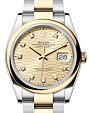 - Rolex Datejust 36 Yellow Gold/Steel Golden Fluted Motif Diamond Dial & Diamond Bezel Oyster Bracelet 126283RBR Rolex Datejust 36 Yellow Gold/Steel ... Bezel Oyster Bracelet 126283RBRRetail Price: Regular Price $21,450 Save: $601 (3%) Our Price: Special Price $20,849