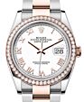 - Rolex Datejust 36 Rose Gold/Steel White Roman Dial & Diamond Bezel Oyster Bracelet 126281RBR Rolex Datejust 36 Rose Gold/Steel White ... Bezel Oyster Bracelet 126281RBRRetail Price: Regular Price $21,700 Save: $901 (4%) Our Price: Special Price $20,799